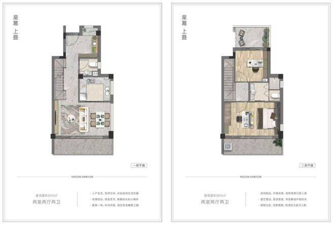 叠墅:95㎡(下叠总价380-420万,上叠350-380万),得房率85%-88%