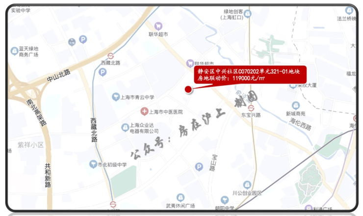 去年9月,上海第三批次土拍中,华发以总价约803730万元,竞得静安区中兴社区C070202单元321-01、322-09地块,地块出让面积59804.8㎡,容积率分别为322-09地块3.0、321-01地块2.5,溢价率0%,成交楼板价48128元/㎡,房地联动价119000/㎡。