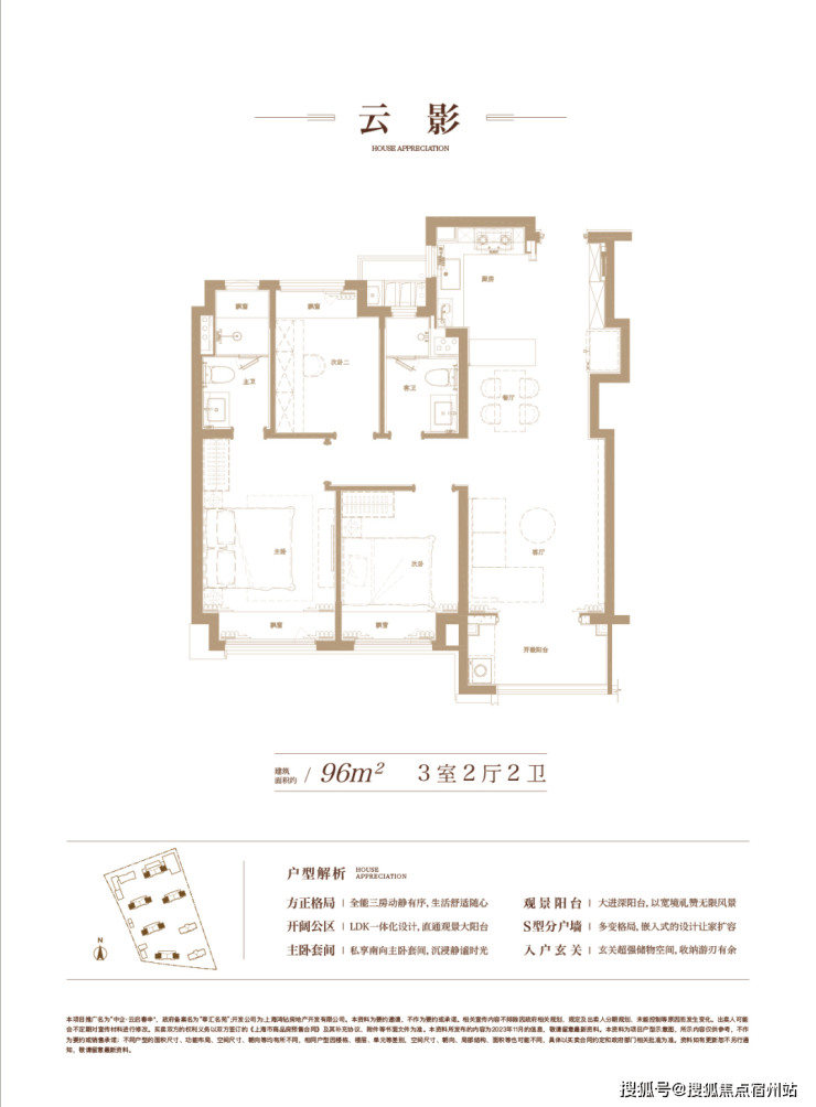 建面约96㎡3房2厅2卫▼