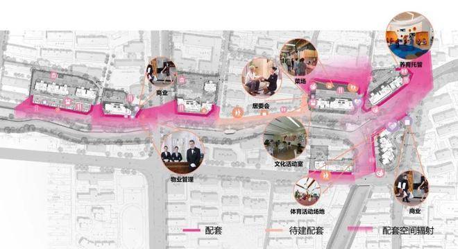 同时,为确保周边居民能享受更好的公共配套,城投控股在设计中对周边道路市容全要素品质进行了提升,包括街道美化、架空线入地、河道绿化改造等。在街区重构中,结合架空层、街道开放界面、社区围合空间,打造共享互动的社区交流场所,营造有温度、和谐的邻里氛围,延续江湾居民的烟火气息。