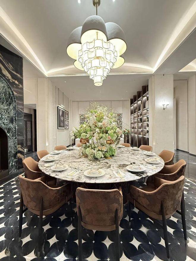 干挂进口石材+金属线条,搭配超大的全景落地窗,把佘山的绿意直接“框”成画。️