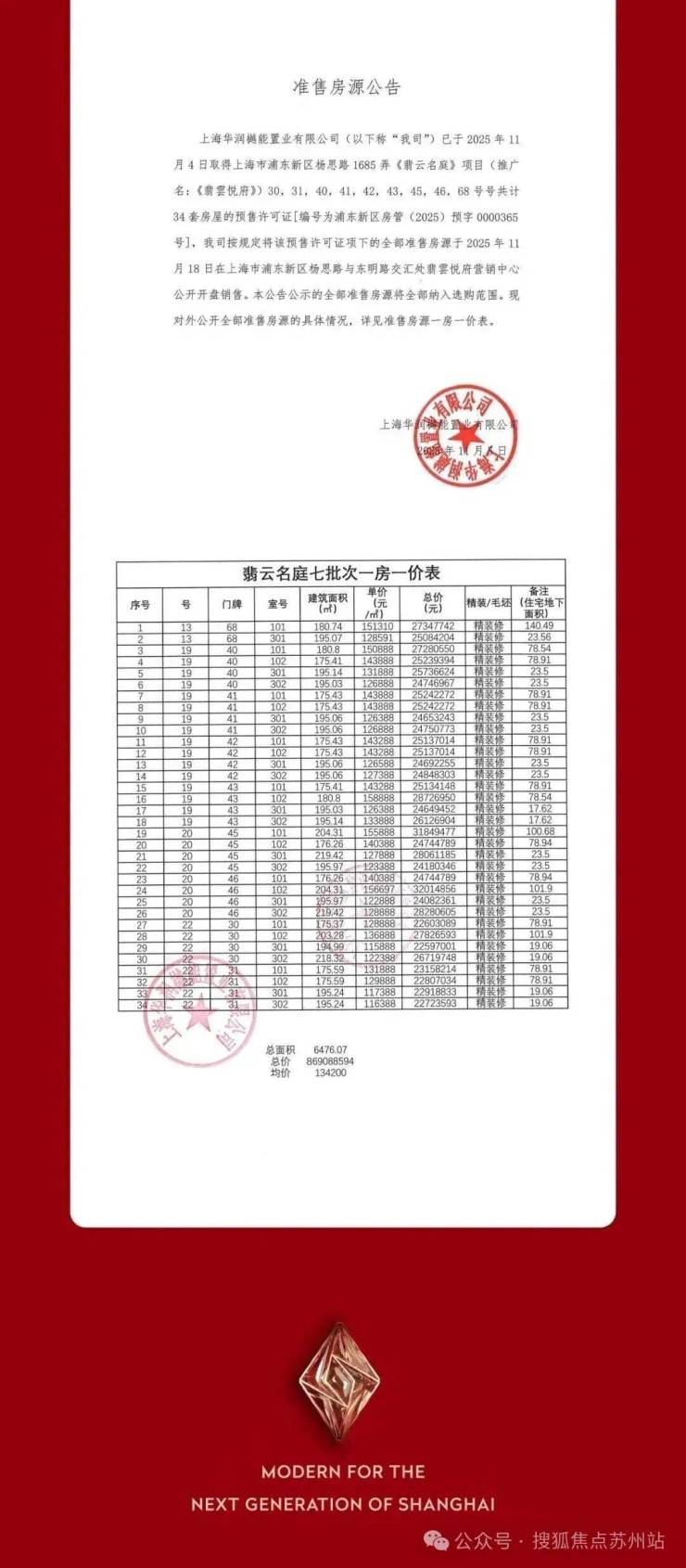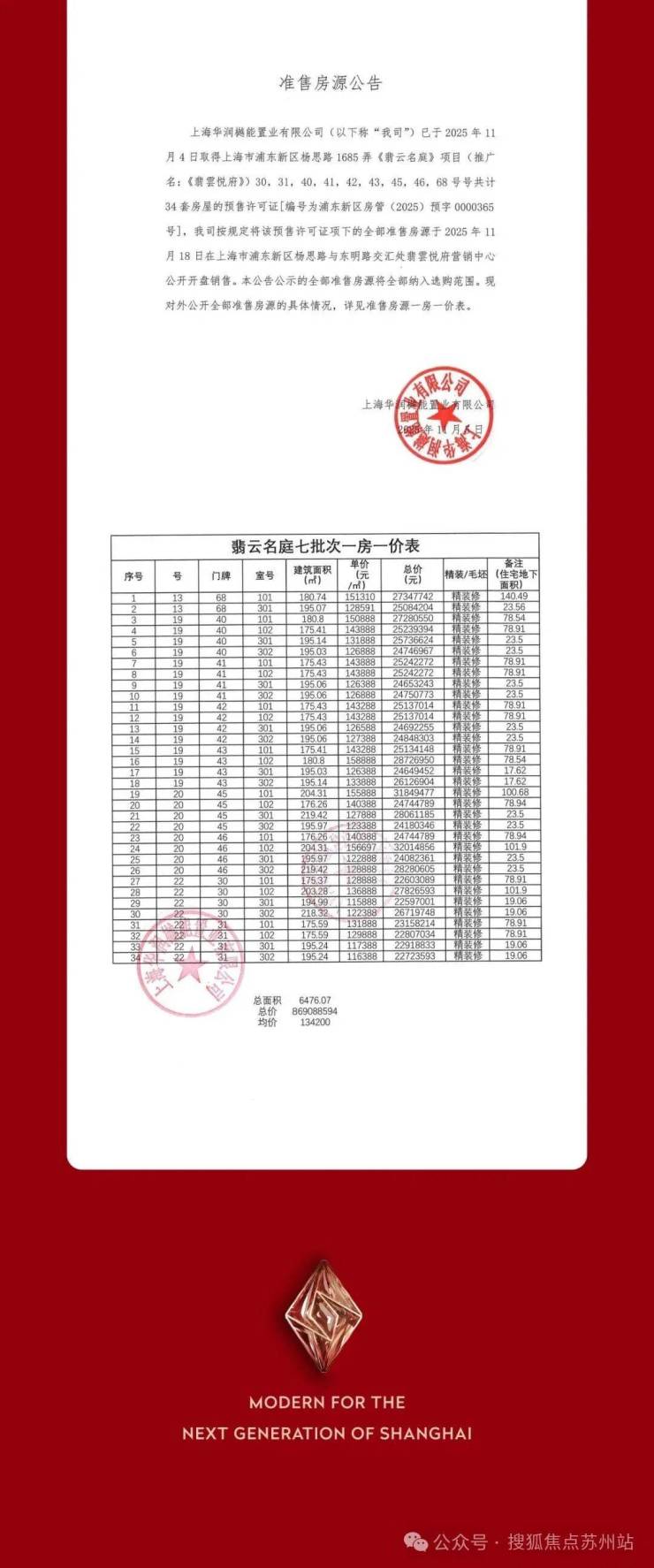 最新消息!2025年上海超级红盘!内中环·新杨思都芯·低密墅区;翡云悦府悦一期七批次加推34席约175-220m²精装叠墅;均价13.42万/m²!认购金100万;认购时间:11月6日-11月10日;售楼处线上火热预约中!