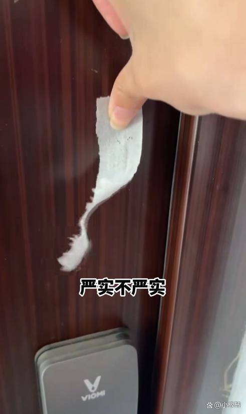 第二看,着重检查门上胶条,它关乎家里密封情况,开发商原配防盗门的胶条容易坏,坏了密封效果差,风、灰尘、噪音容易进来。