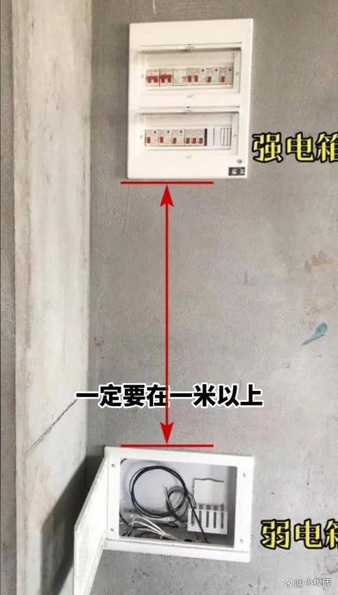 强弱电箱距离要超一米,强电运行有电磁场,太近会干扰弱电信号,像上网卡、电视画面不清这些问题就会出现,得记住这距离要求。