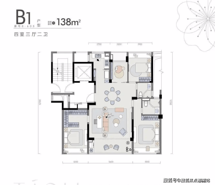 同的生活美学设定,其中,在建面约138㎡四房户型中,你会有一种“旅居生活家”的代入感。
