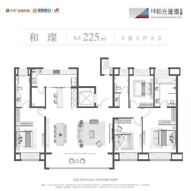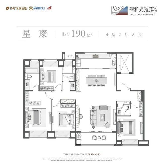 约150㎡改善起步标准,以最大约19.8m南向大面宽、超49㎡餐客厅、270°巨幕视野等尺度越级,洋房得房率约85%,极致升阶空间格局,成全顶奢家族生活的无界自由,气派的舒适度、细腻的享受感在此间和融交汇。