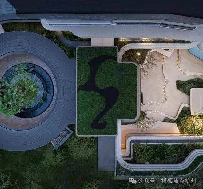 因项目整体抬高,从下沉庭院到架空层“空中花园”的落差极大,形成独特的峡谷地貌,杭序府的设计团队汲取九溪烟树为造园灵感,打造一个立体多维的城市溪谷交互园林;因项目毗邻江岸,杭序府的外立面以“站立的江潮”为灵感,