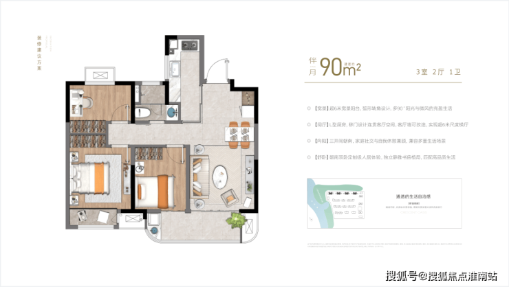 2、(方正)户型方正,高得房率,超12米三开间朝南,动静分区,流畅居家动线;