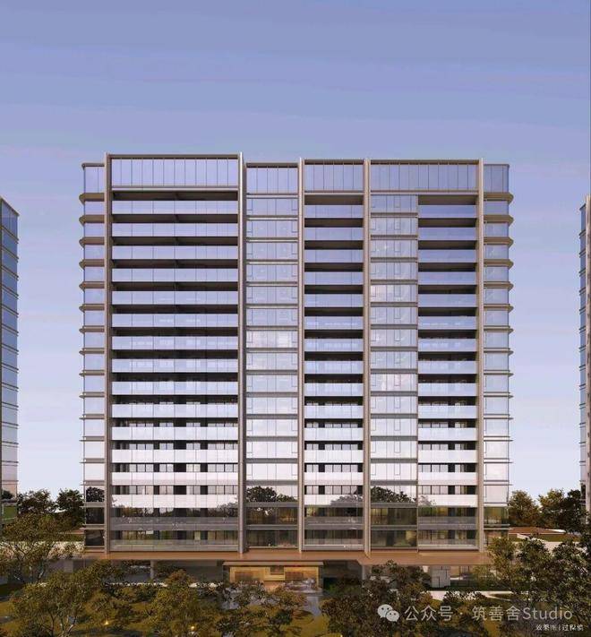 建筑立面以“山水折屏”为核心理念,GLA建筑设计巧妙融合浅灰色铝板与玻璃幕墙,通过横向线条的层叠和竖向框架的分割,生动再现山水画的层次韵味。秉持“消隐与凸显”的设计哲学,高层立面运用45度斜切铝板与低辐射玻璃的组合,巧妙弱化建筑体量感,同时以局部金色铝板线条精准勾勒山水画的轮廓。高层立面采用“三段式”设计,基座选用深灰色石材,中部为浅灰色铝板与玻璃幕墙,顶部点缀金色铝板线条,共同构筑“山-水-天”的立体意境。