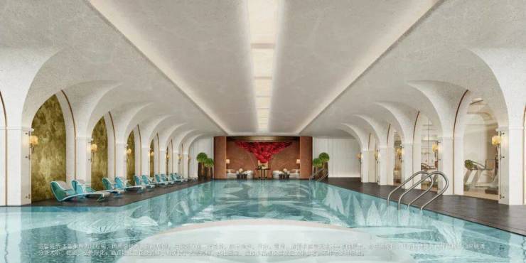 会所内配备了健身房、游泳池、瑜伽室、茶室、棋牌室等多种设施,以“家的延伸” 为定位,整合了海派美学与多元场景,满足了居民不同的休闲娱乐需求。