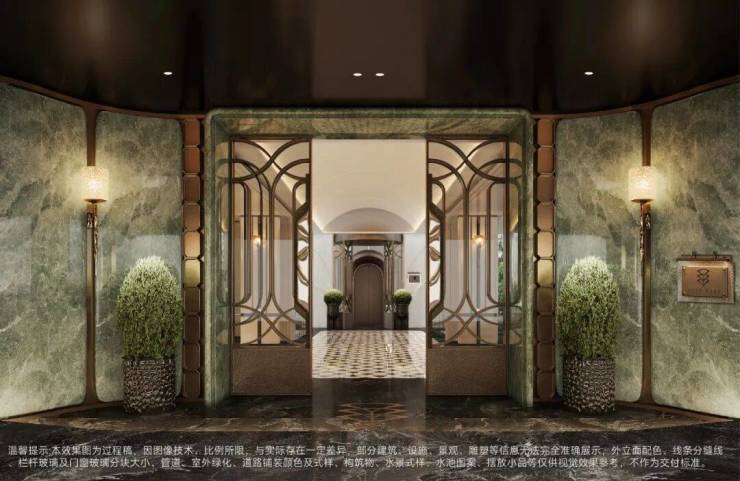 玄关处地面菱形拼花与电梯前室地面相呼应,不仅使空间更加富有层次,同时营造专属的入户尊崇感。
