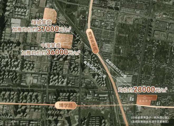 在奥体5公里生活圈内,棠前明月“2字头”的房价很难找到平替。此外,与项目接壤的萧山市北东板块,即通城高架西侧,当前新房售价也得3.5-3.7万/平。距离仅2公里就与棠前明月拉开7000-9000元/㎡的价差。