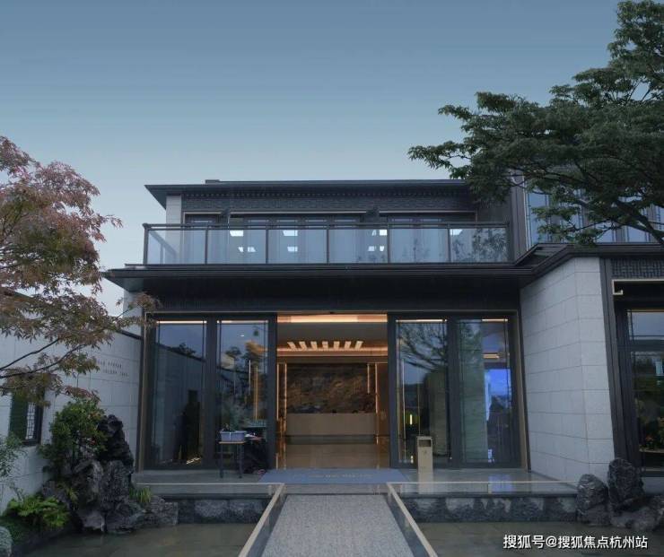 新中式,院墅,中式的坡屋顶与通透的大玻璃立面结合,将东方的传统意境与国际化的审美融合,像极了当前的杭州也像极了此刻的龙坞,既老又新,既传统又现代,既有西子湖的温婉又有钱塘江的磅礴,碰撞出一种全新的审美与生活方式。溪映听庐隆起的屋脊,仿佛群山的绵延,大地与人文交织出全新的风景。