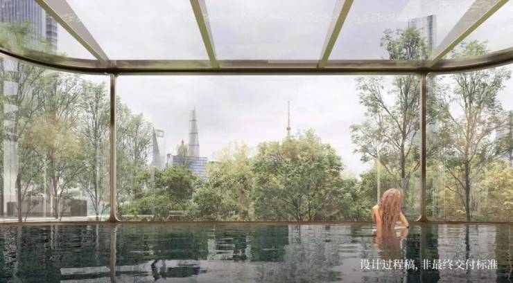 置于城市上空的悬浮泳池,对望陆家嘴峯景,将“风景”变成生活的瑰丽画卷。周围被自然绿意包裹,遨游其中,坐看外滩百年气象,外揽上海万千繁华,内观一隅宁静的栖心谧境,收放自如间实现心情的安放。