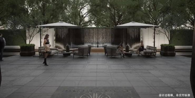 项目入口“孔雀廊”取意路易斯·康的金贝尔艺术馆拱形语汇,融合礼查饭店“孔雀厅”的优雅形态,成为历史与当代交汇的门廊;创新双层廊道复合景观体系,让归家之路穿行于层层绿意与光影之间;中央草坪灵感源自英国达西庄园,喷泉与几何花园交织,营造“城市庄园”的诗意尺度。更有地上悬浮会所 Symphony 会客厅,将健身、艺廊、私宴与花园融为一体,于阳光与江景之间,奏响一曲关于生活的协奏曲。