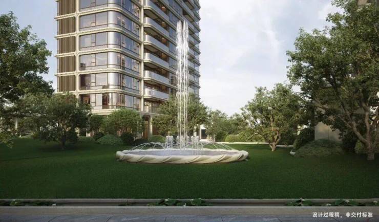 绿城·潮鸣外滩南邻6公顷规划绿地,以城市生息设计,让绿意流淌进园区,与中央公园风景互构。项目以南向景观为导向,围合一园静谧,汲取英国达西庄园灵感,打造一座中央公园旁的庄园谧境。