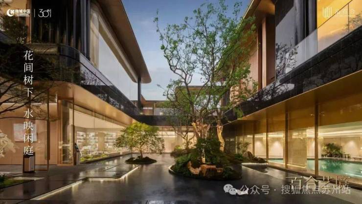 3、园林玩出花!一芯一轴双环+下沉庭院,把《拙政园》种进社区