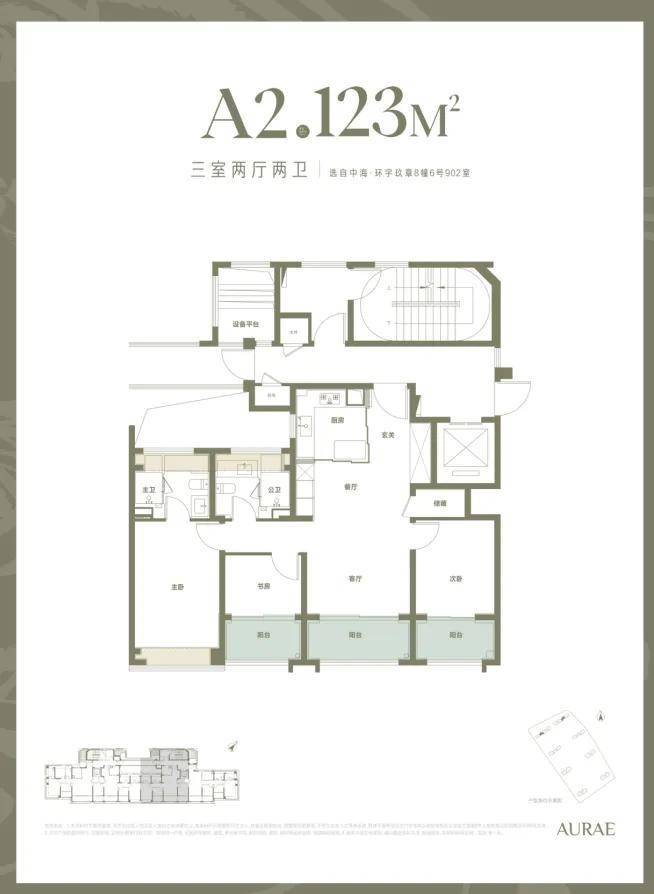 4、【新规后大三房】135平户型,三阳台,全飘窗,实得率约93%。每个卧室空间尺度舒适,这个户型非常适合需求强收纳的粉丝,收纳总量可达32.5平,实现收纳自由;