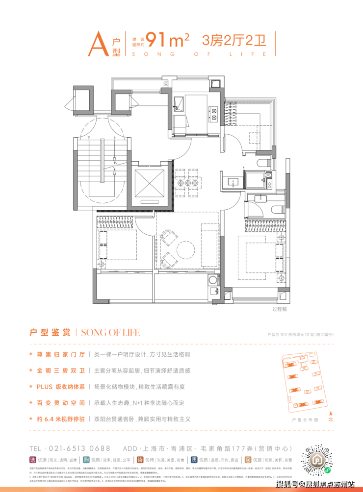 保利虹桥和颂·栖岸售楼处电话☎:400-9016-520建面约91㎡3房2厅2卫