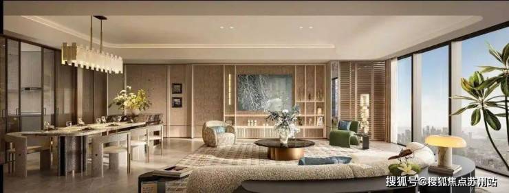 该户型户型不仅保留三开间朝南和餐客厅一体化的优势,更在尺度上大踏步进阶。