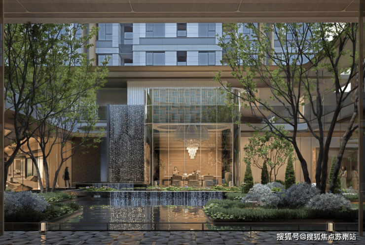 社区内自带约800㎡下沉式会所,涵盖健身、会客、阅读、洽谈等多元复合功能,通过玻璃隔断与自然光线与星光叠瀑的下沉式花园串联,既保持功能独立又实现视觉通透。