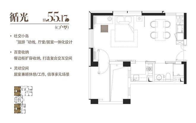 社交小岛|洄游动线,厅堂/居室一体化设计