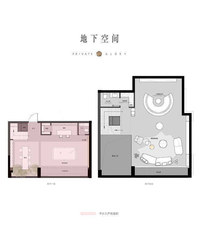 以建面约313㎡户型为例,地下空间约6.6米局部挑高+南北双采光窗,地下一层不计入产权面积,可增设夹层做两层,整个使用空间达到了惊人的140㎡,保姆房、瑜伽房、工具房、棋牌室、影音厅等多功能空间通通不在话下。