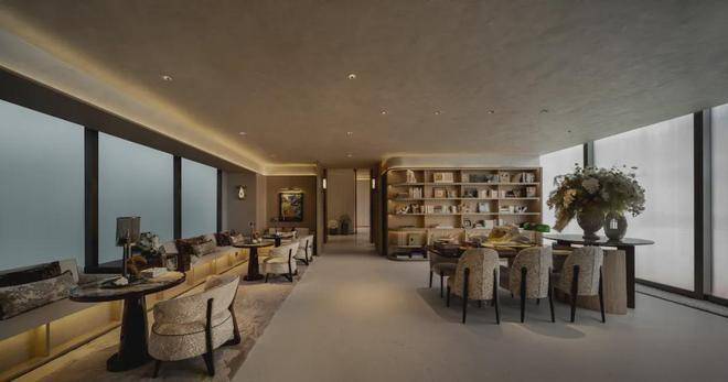 不计成本打造大量定制化米黄色石材饰面、奢玉、奢石搭配海派金属的装饰,细节与调性堪称板块标杆!