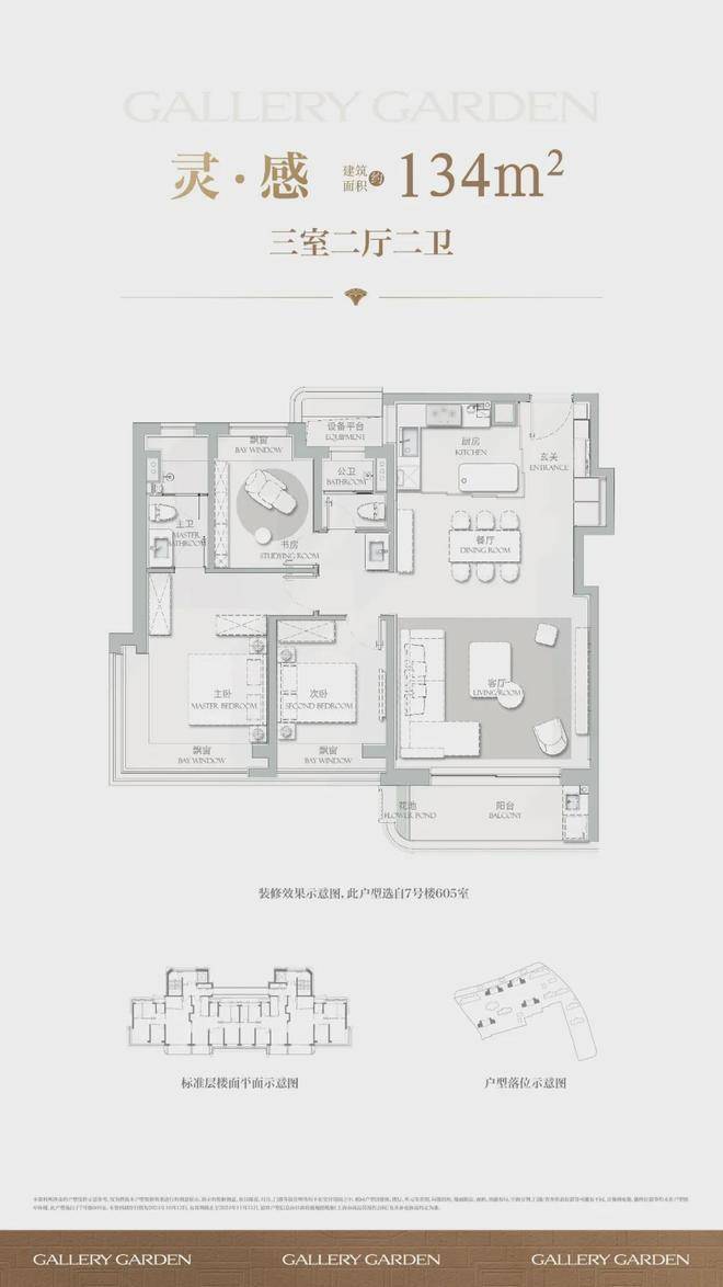 建面约134㎡3房2厅2卫户型