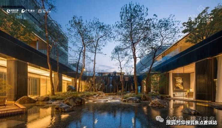 特邀近180年历史日本植弥加藤造园社共创设计,以“千里江山图”为灵感取境,巧妙运用景观高差处理手法打造下沉式庭院,围合一方大美隐于内的“泛会所空间”。