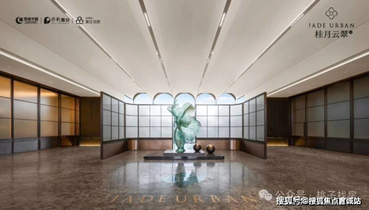 约50米宽幅恢弘大门庭、环岛式酒店落客区、朗阔挑高大堂,塑造层层叠翠归家仪式,辉映江南的封面,尽显翡翠的昭示感。