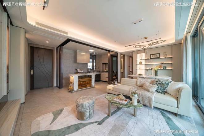 餐客厅的尺度达到了约80-90m²,拓展可达约100㎡,视觉震撼度拉满,采光优越,让空间显得非常阔绰。精装更是重金打造,