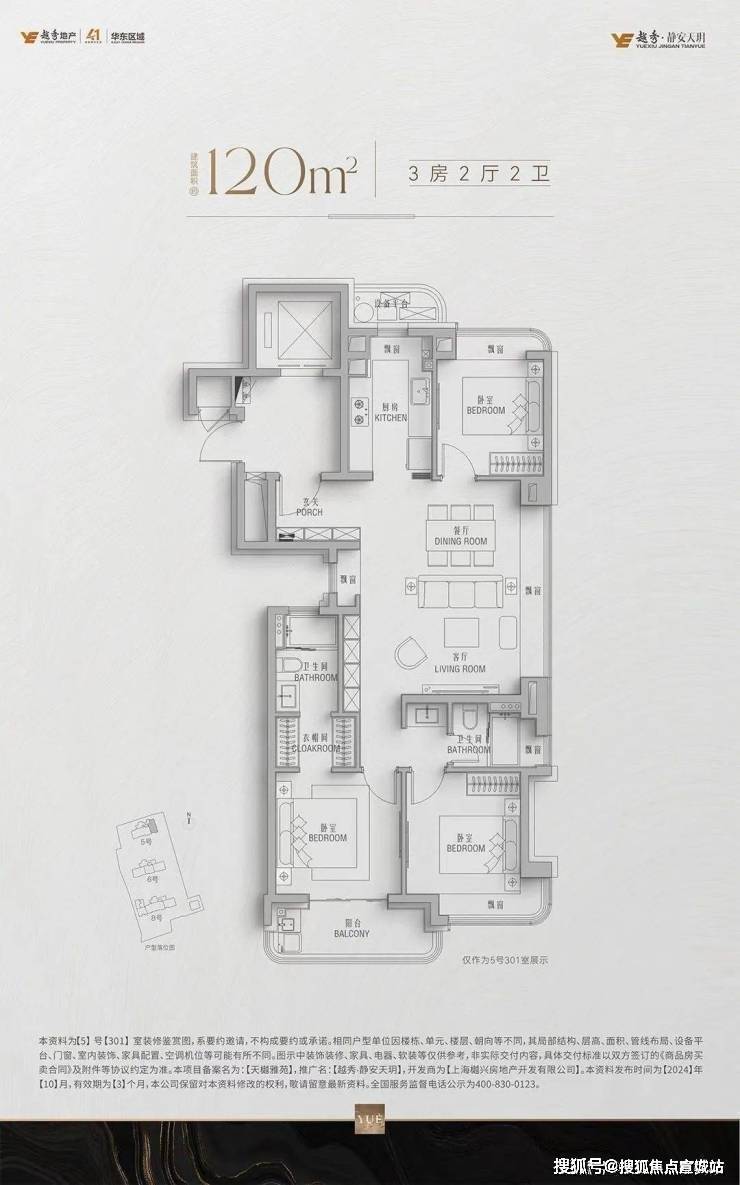 120㎡户型同样沿用142㎡户型的高端配置,类一梯一户,私享电梯厅空间;正三房空间尺度,适应全龄家庭居住需求;约3.8M一体化主厅,以直通进深约1.6米阔景阳台,形成一个纵向舒适的大场域,自由朗轩尺度,肆意享受阳光的温暖和海风拂面的凉爽;峯范套房主卧,配置飘窗拓展空间;约4.5㎡独立卫生间,干湿三分离空间,人性化细节考究,再次让所有人感受到了静安天玥的静奢主义美学。