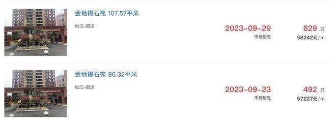 其他次新小区,比如泗泾大盘金地玺悦,二手房成交价也都在6.3-6.9万/㎡之间。