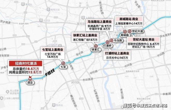 6站漕河泾 9站徐家汇9号线泗泾站新一代超级TOD自带商业,总体量约18.5万方纯商业达到了约12.5万方与地铁商场仅约200米超高配装标「招商时代潮派」
