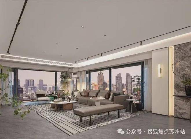 山河ONE的客厅及卧室基本采用大尺度落地窗,270°全景舱式俯瞰姑苏古城、千年古运河、狮山城市繁华、东方之门天际,真正实现无价景观资源的空间平权。
