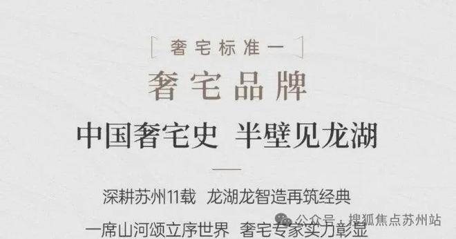 【项目核心价值点】狮山路核心CBD·最极致资源配套主城稀缺土地·终极置业地段运河文脉传承·绝版沿线住宅隐贵定制豪宅·极致稀缺平墅传奇综合地标·纵享国际生活国际巅峰大宅·纯粹公建立面豪宅龙湖品牌·深耕苏州11载国际一线臻装·隐奢细节雕琢亿级隐奢会所·康莱德行政酒廊钻石龙湖物业·康莱德增值服务