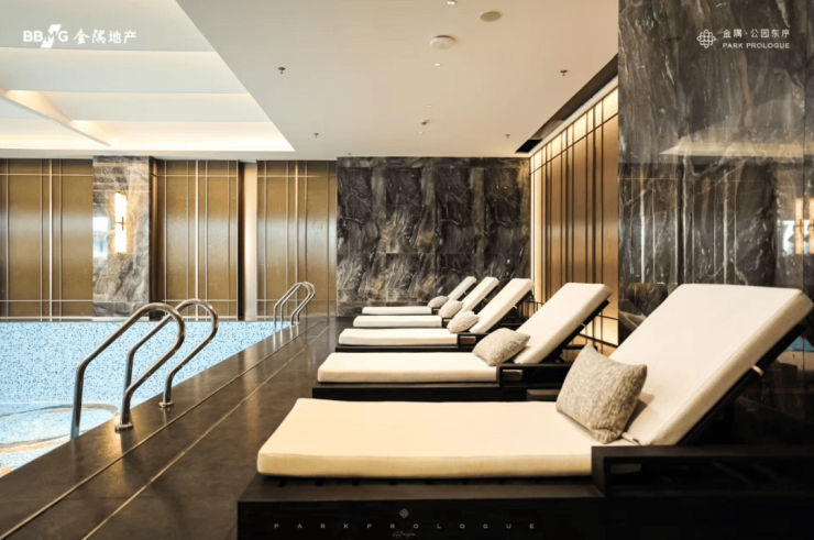 地下会所对标星级酒店,包含了恒温泳池/瑜伽房/童玩空间/健身房/棋牌室等多元活动空间,营造出兼具艺术感与松弛感的度假式氛围。