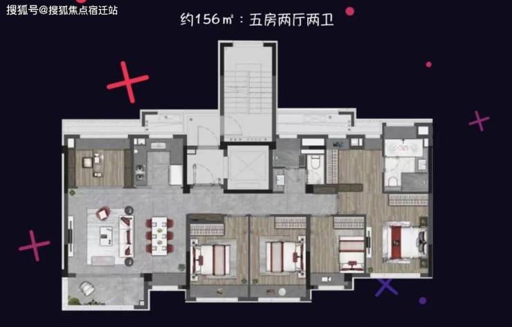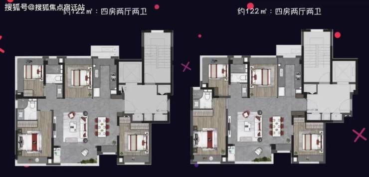 122平的4房2卫户型,大横厅飞机户型,总价600万起步。
