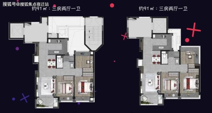 91平的3房1卫户型,动静分离设计,预计总价400万级别上车。