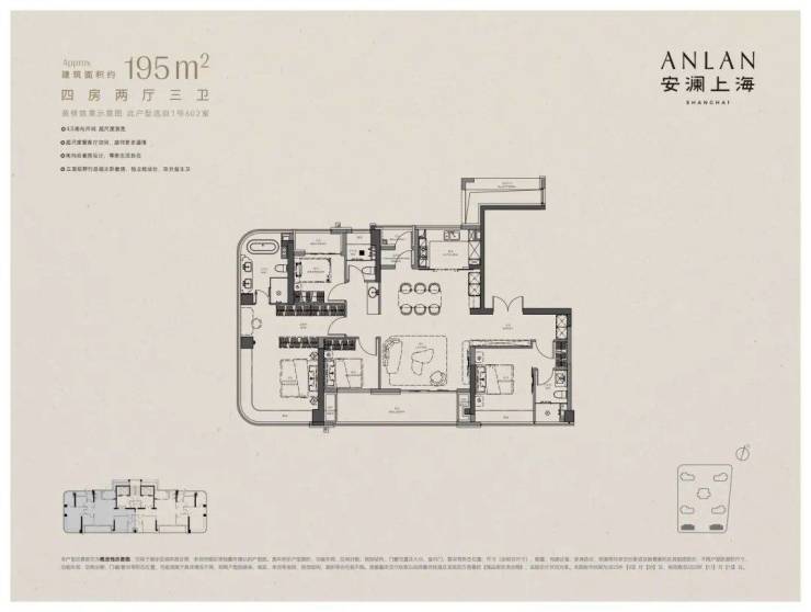 价格方面,建面约195㎡,总价2700-3400万,单价13.8-17.5万/㎡;