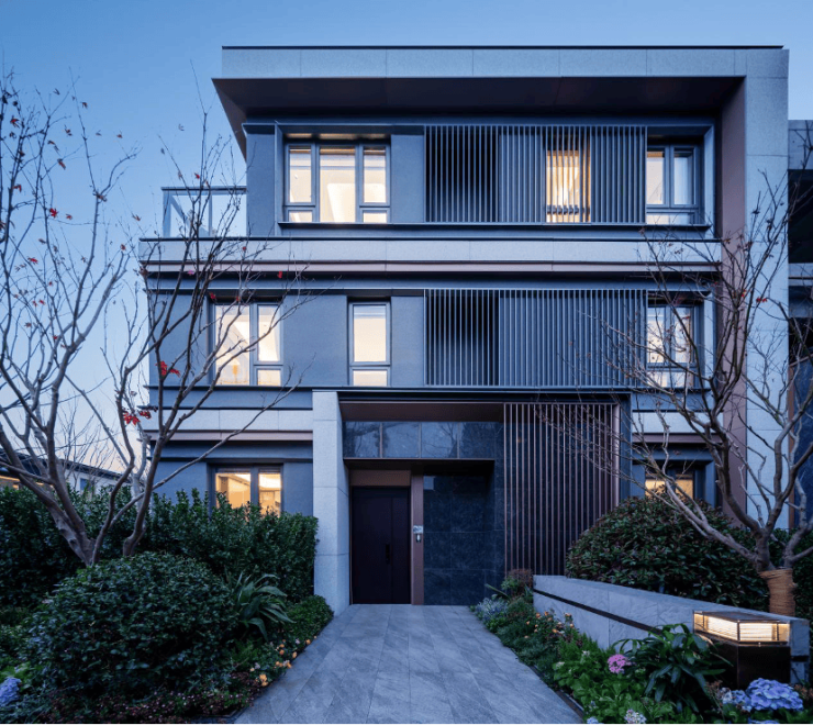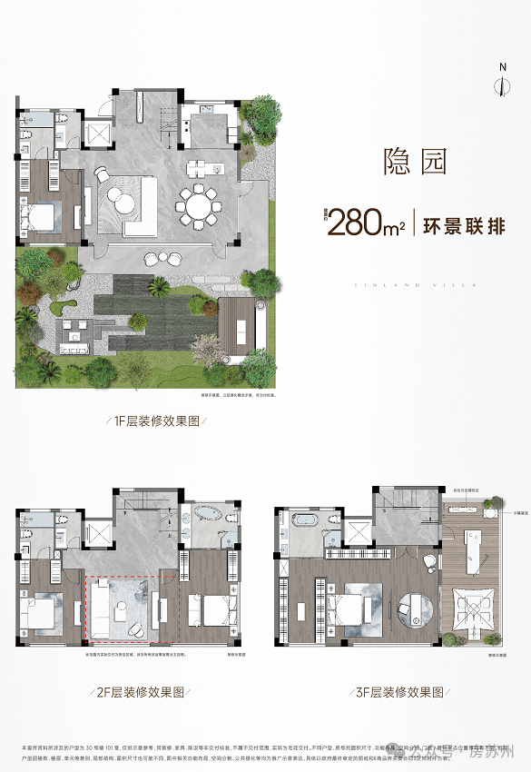 联排产品:从170㎡到280㎡,做到了三面宽朝南、超大庭院、南北双入户。这改写了传统别墅北向暗厅的缺陷,是真正的“代际进化”。