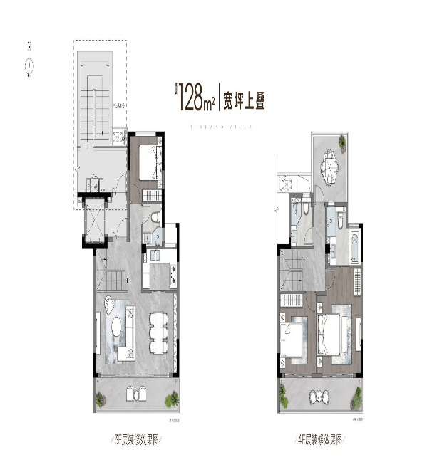 建面约128-140㎡的创新小面积叠墅,摒弃常见的“中叠”,只做纯粹的4层上下叠。独立入户,互不干扰。