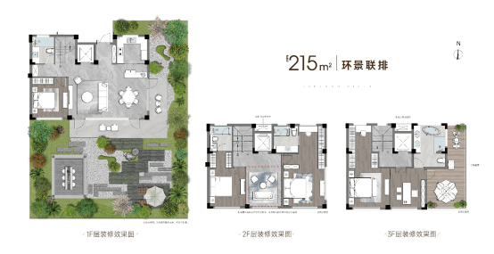 建面约215㎡的联排产品,以“大面宽、短进深、全套房、多庭院”的设计,迭代苏州墅居体验。