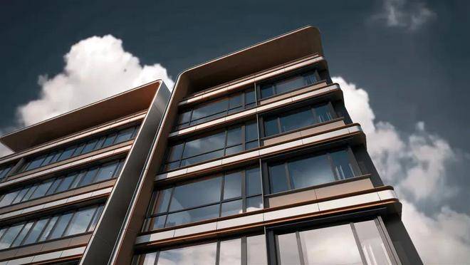 以极简线条勾勒建筑都市云盒造型和圆角建筑语言表达,结合三玻两腔双LOW-E系统化外窗与精致的金、银、灰铝板细节,构建高级灰底色下的深浅冷暖材质对比,赋予建筑新时代美学。