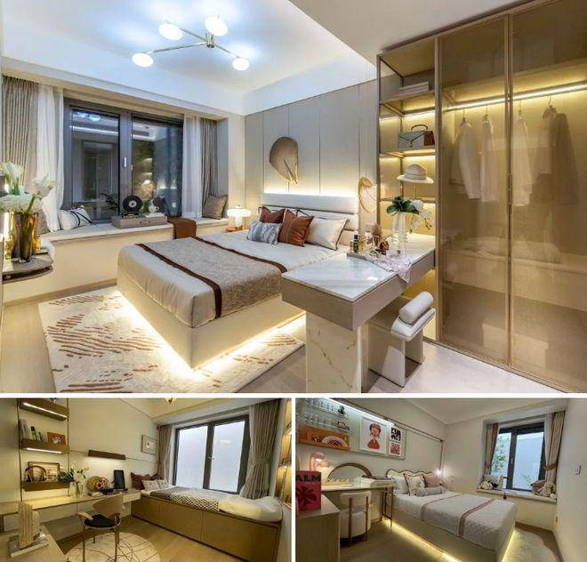 建筑面积约105㎡户型样板间,得房率达到约78%,相对传统“2+1房”设计,可以做到正三房,即每个房间可以摆下大床与衣柜,为每位家庭成员提供完整居住功能。