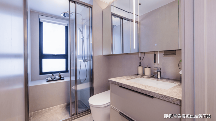卫生间更是设计了整面镜柜收纳空间,主卫配置美妆冰箱,细节无敌~