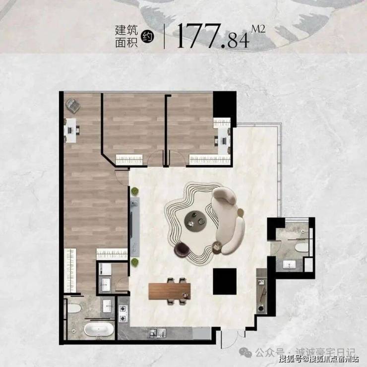 整个项目是由一栋28层5A品质的标准写字楼和一栋13层商务综合楼组成。配备挑空的入户大堂,并均选用高标准建材设备。标准房型面积为178-195㎡,格局方正,使用率超高。