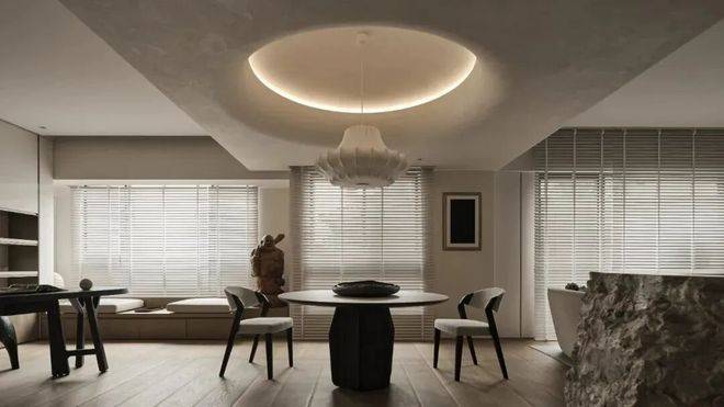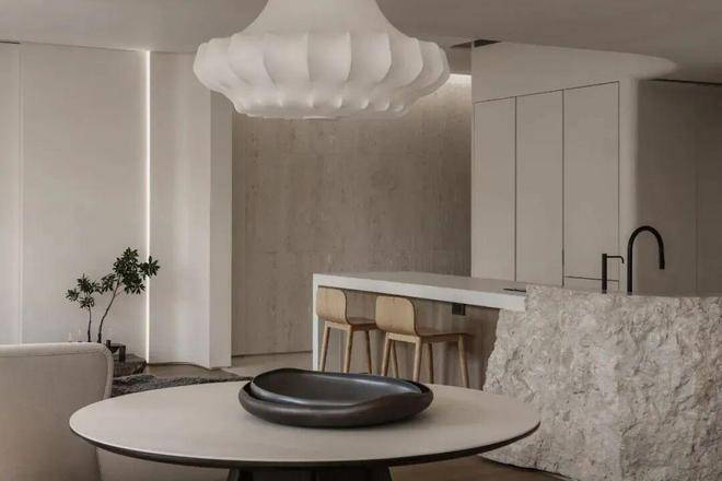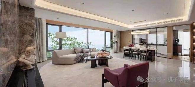 譬如,建面约115方三房两厅两卫,以三开间朝南搭配LDKB一体化阔厅,通过约27方餐客厅与观景阳台无缝串联,尺度彰显气势之外,与公区融合后,衍生出更多社交价值。