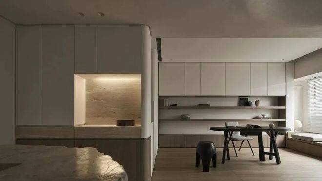 第一眼看到玉湖之星的立面,脑海里跳出钱二板块芝澜月华的香槟金弧形。没错, 手笔包括西溪云庐、咏溪云庐等作品的九米设计,白、金色系的经典搭配,石材、铝板、金属格栅、大面积玻璃的组合,以金属油画框叠加弧形超大尺度玻璃窗,增加了建筑的通透感和轻盈感,此立面和玉湖CBD交相辉映。